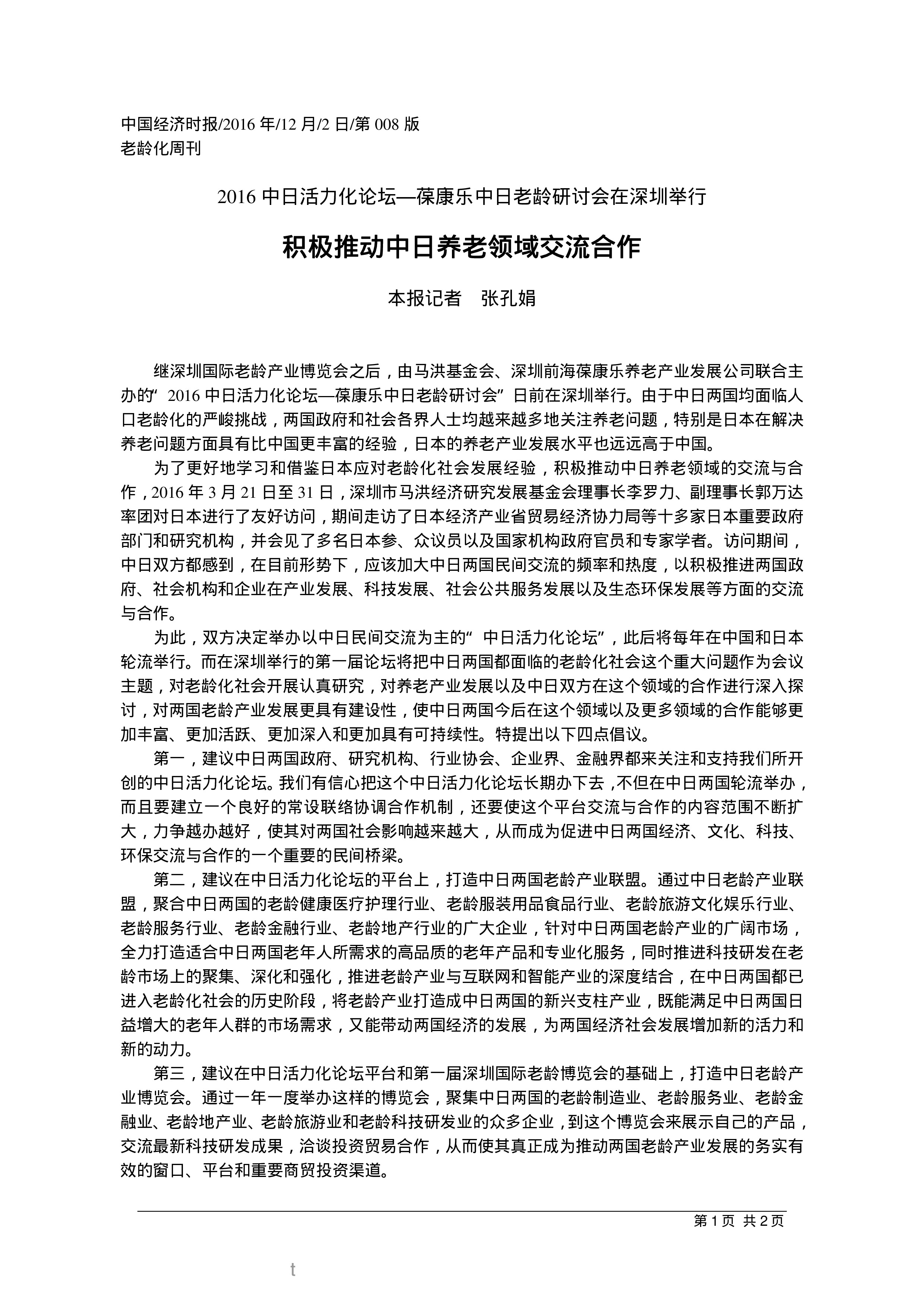 积极推动中日养老领域交流合作