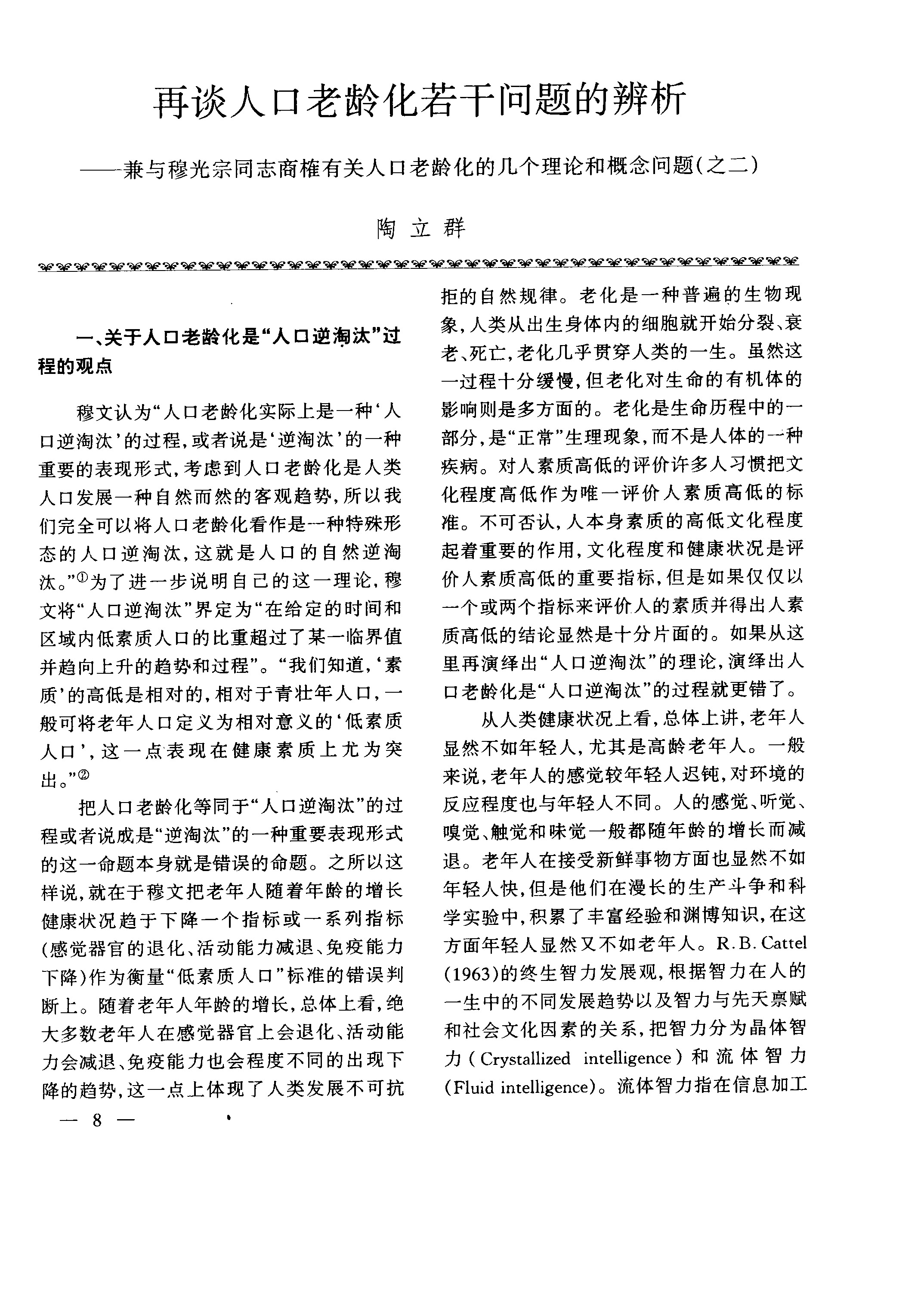 上一篇:再谈人口老龄化若干问题的辨析──兼与穆光宗等同志商榷有关人口老龄化的几个理论和概念问题(之一)