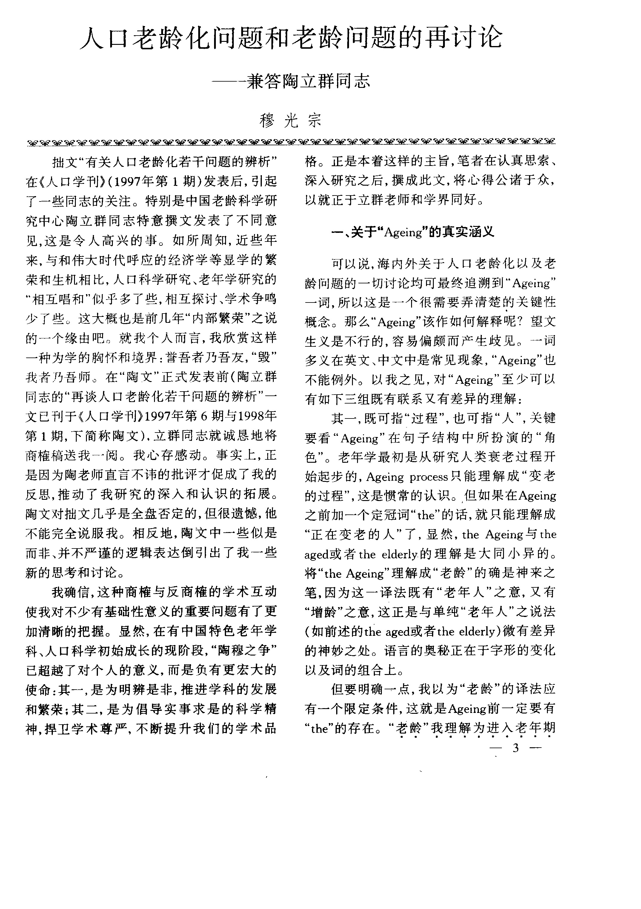 上一篇:再谈人口老龄化若干问题的辨析──兼与穆光宗同志商榷有关人口老龄化的几个理论和概念问题(之二)