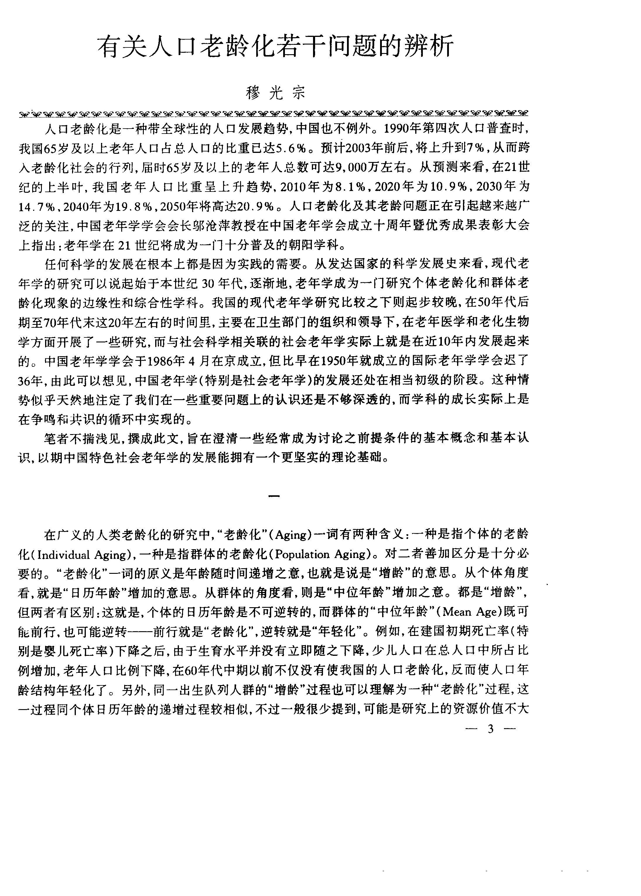 有关人口老龄化若干问题的辨析
