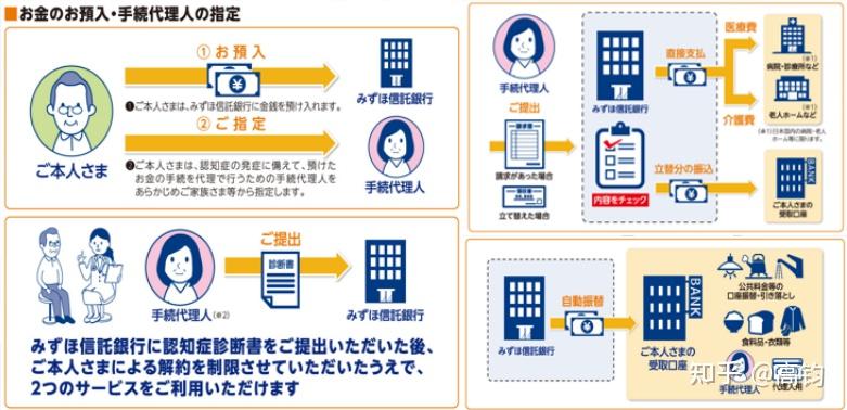 如果医生诊断出客户患有痴呆症,则可以提交医院证明给瑞穗信托银行,银行会从防止欺诈等角度出发,客户可以按照指定的金额和频率从已委托的信托财产转移到储蓄账户,并根据程序代理的要求将其用于生活费、昂贵的医疗费、护理费等。