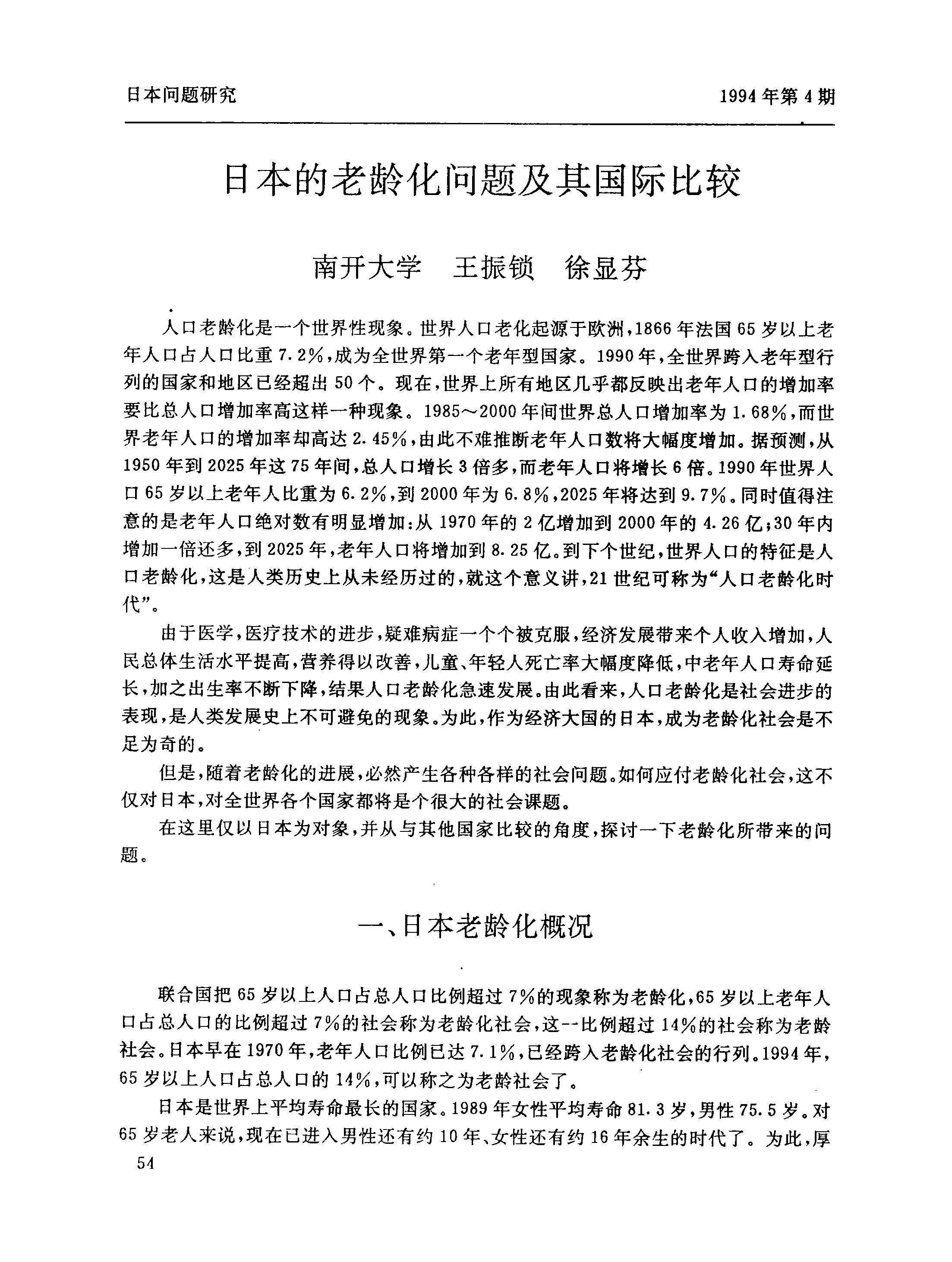 王振锁 徐显芬︱日本的老龄化问题及其国际比较