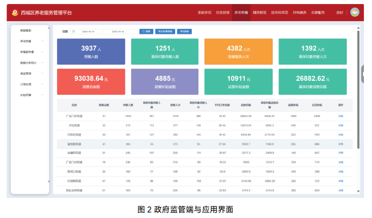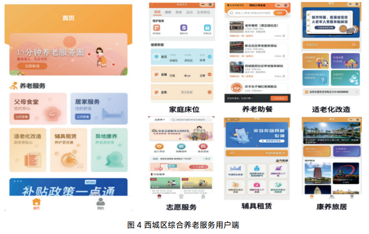 此后,西城区承担全市数字养老助餐、适老化改造、辅具租赁等服务体系建设的试点工作,每项业务均建立了相应的业务和监管系统。2023年起,通过整合基本养老服务、家庭养老床位、养老助餐、巡视关爱、居家适老化改造、辅助器具租赁、异地康养、志愿服务管理八大专业服务平台,形成了全区统一的养老服务与管理综合平台。在此基础上,建设了全区智慧养老大数据平台,形成了老年人口分布、服务资源分布、养老服务开展情况“三本账”及全区养老服务地图。在公众服务端,开发了各类业务小程序,统一接入“西城家园”门户,老年居民可通过身份证、老年卡、手机微信等多种方式实现养老助餐消费和服务预订,并与北京市养老服务平台实现对接,极大地提高了服务的便利性。