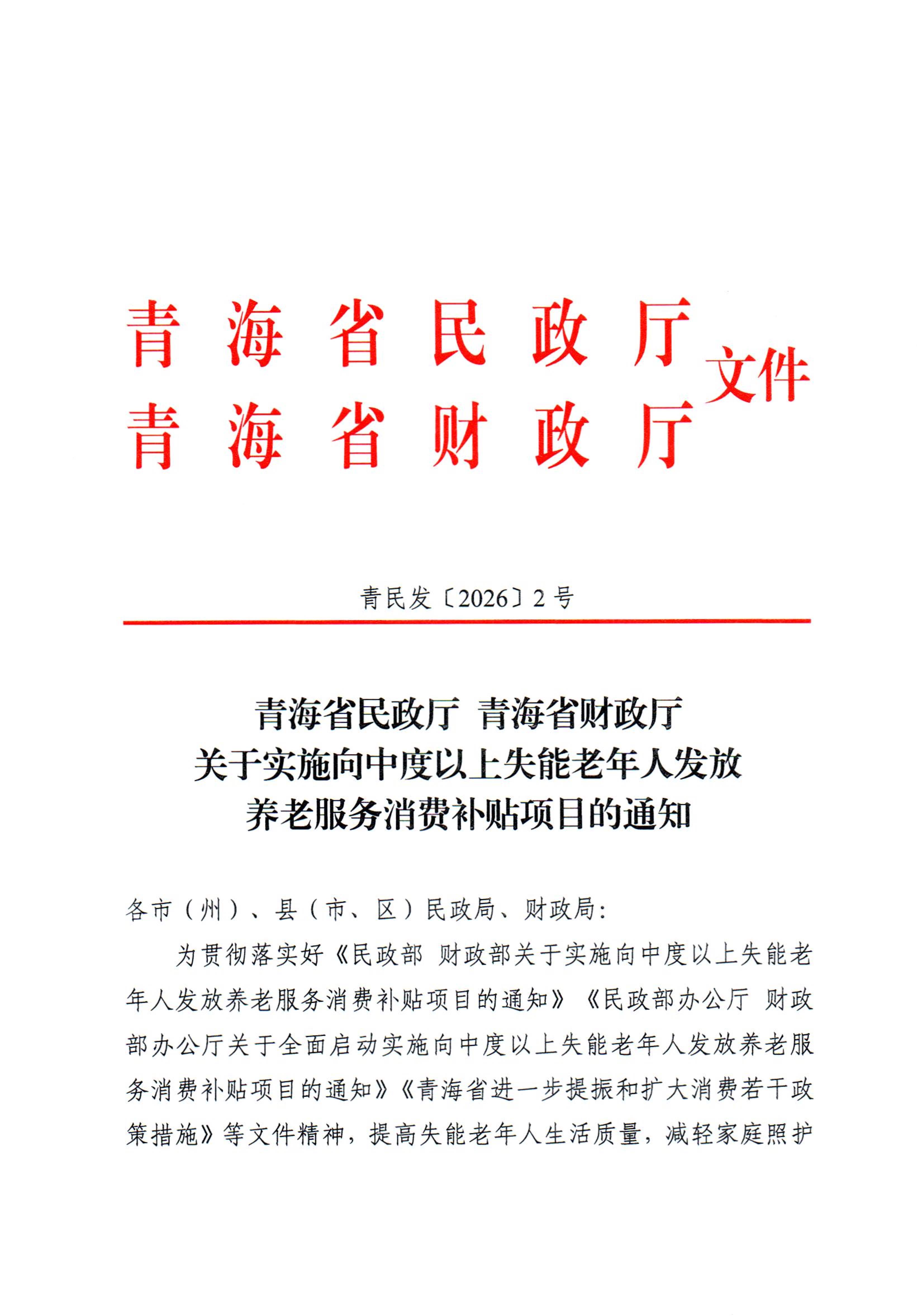 青海省民政厅 青海省财政厅关于实施向