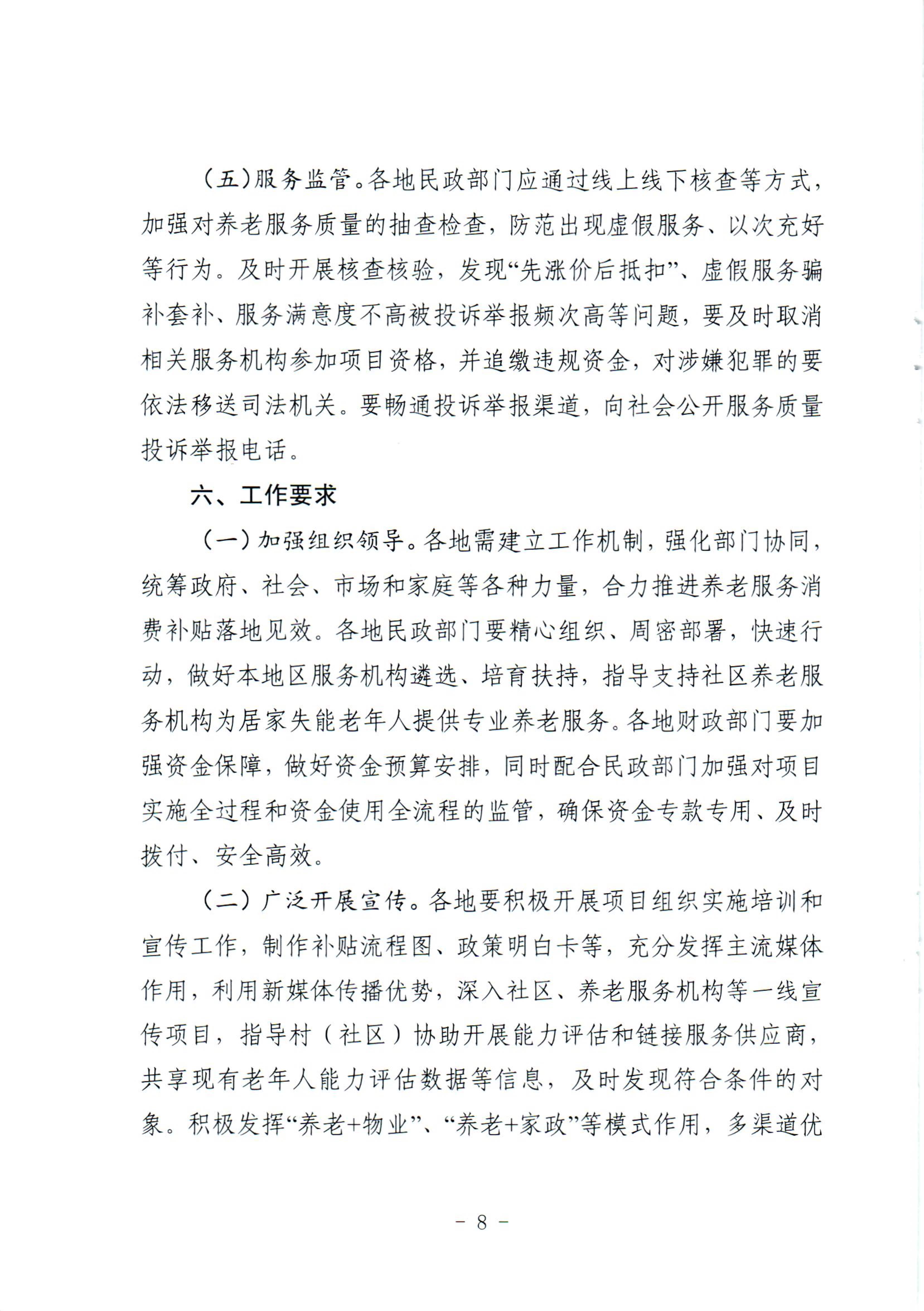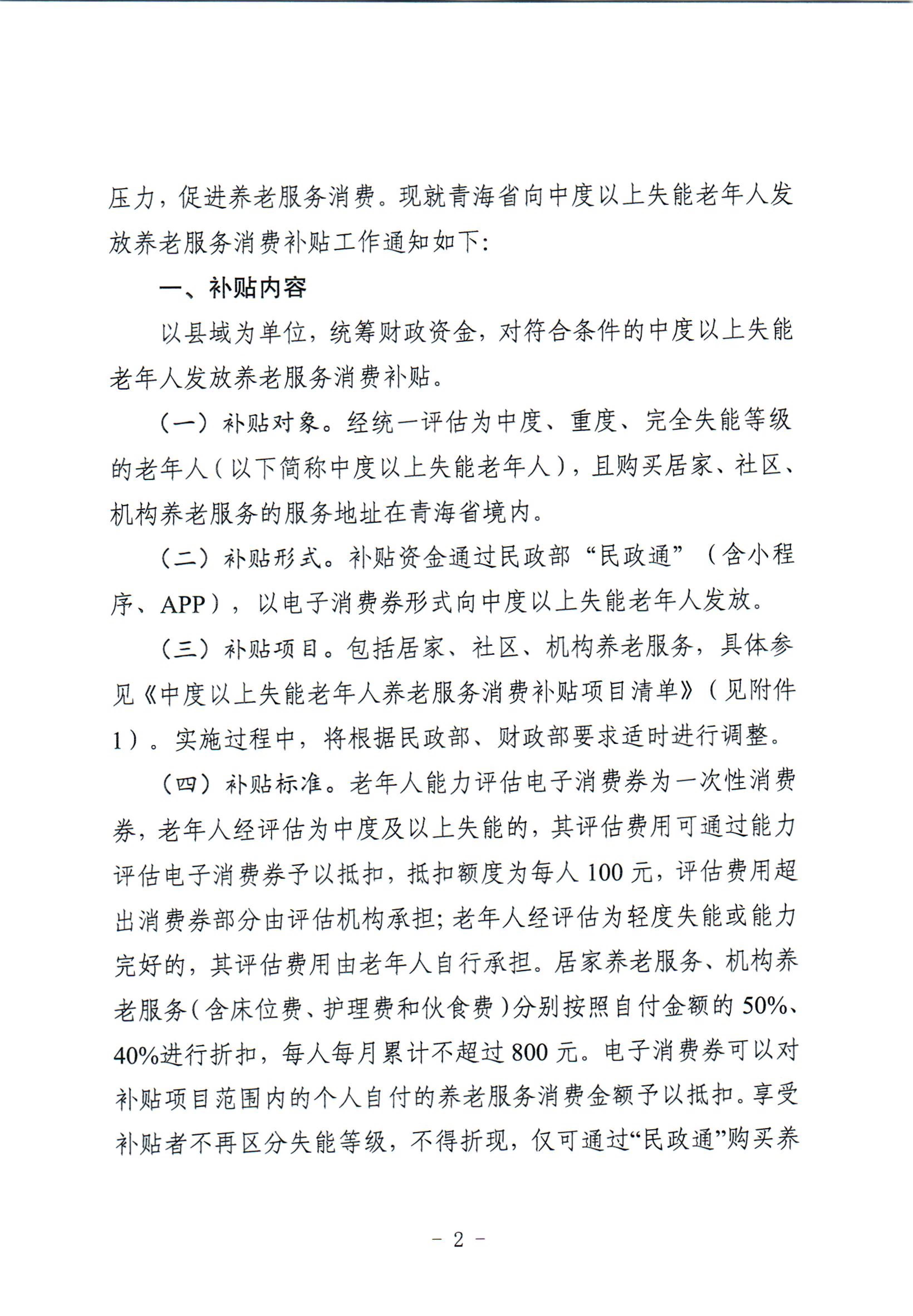 中度以上失能老年人发放养老服务消费补贴项目的通知